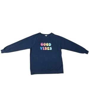 Wildfox Good Vibes Statement Sweatshirt Navy Blue Women Size Medium Comfy Casual