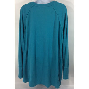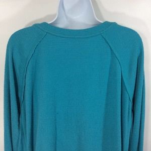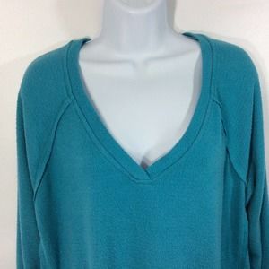 Wildfox Haley Blue Knit V Neck Pullover Sweater Waffle Knit Women's XL