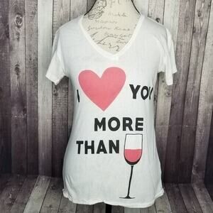 Wildfox I Love You More Than Wine V-neck Short Sleeve Graphic Tee Women's Small
