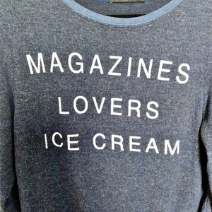 Wildfox "I Owe It To" Magazines Lovers Ice Cream Gray and White Pullover Graphic Sweatshirt. light pilling throughout, as Wildfox is known for. Very soft and cozy.