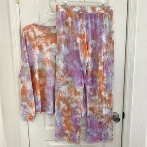 Wildfox Intimates Dreamland Pajamas 2 PC Set Top & Pants Rainbow Cloud Tie Dye