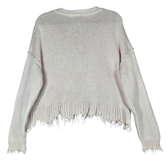 Wildfox Kiss Lips Distressed Hem Sweater XS Relaxed Boxy Oversized Cozy Retro
