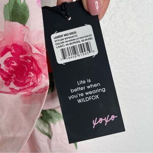 Wildfox Laurent Midi Dress Pink Marshmallow Single Rose Bow Size Large