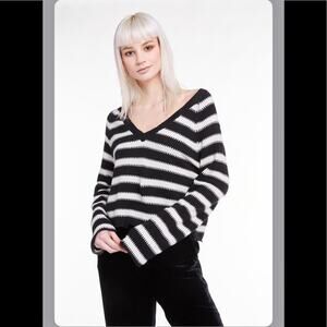 Wildfox Leanne V-Neck Knit Striped Sweater