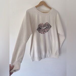Wildfox Leopard Print Lips Graphic Cream Oversized Crewneck Pullover Sweatshirt