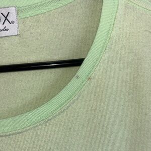 Chic Wildfox sweater in light green. Features bold blue lettering. Perfect for casual wear.