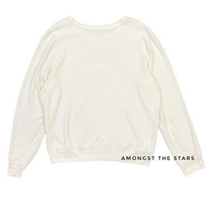 Brand new WITHOUT tags, Women's size XL / X-Large. This Wildfox Light Hearted Rainbow Baggy Beach Jumper is so soft and comfortable! Comes in the color Salt, a slightly off white. This crewneck, long sleeve top has a rainbow across the chest in pink, orange, yellow and green. Perfect to show your pride! Softer than a sweatshirt, this is perfect to wear for loungewear as well. The material naturally has light pilling.