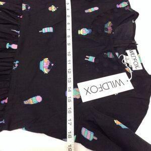 Dress is black with sweet desserts, Ice Cream Sundae, Popsicle and Ice Cream Cones