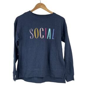 Wildfox NWT Navy Statement “Social” Sweatshirt Side Slits Drop Shoulder Size S