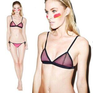 Wildfox Neon Triangle Top Size Medium Sporty Mesh Bikini Pink Black Sz M New