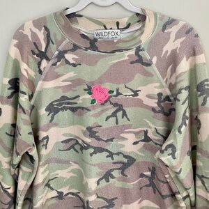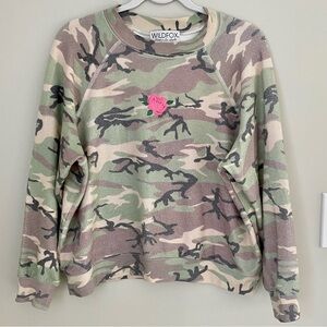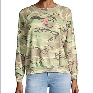 Wildfox Oversized Pullover Sweatshirt Camo Rosette , XS