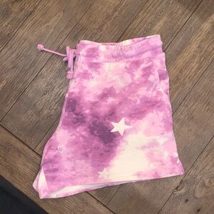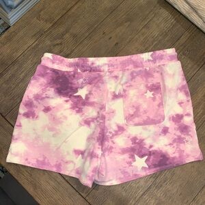 Wildfox Purple Tie Dye Star Print Drawstring Casual Lounge Shorts with Pickets L. Like new!
