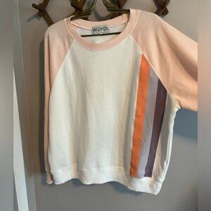 Wildfox Raglan White Pink Sleeves Sweatshirt Jumper Colorful Stripes Medium