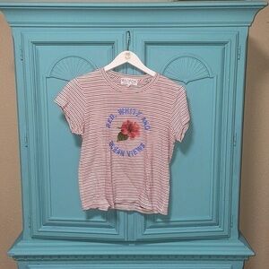 🦊💋 Wildfox Red White and Ocean Views Stripe Tee