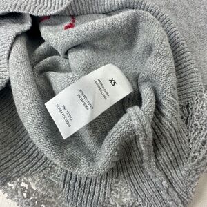 Size XS. Purposefully distressed sleeves and hem. No rips, stains or tears. Great condition.