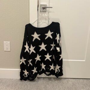 A cult-favorite Wildfox knit, worn by icons like Taylor Swift and Selena Gomez. This oversized star-print sweater is a true collector’s piece, perfect as a statement pullover, casual mini dress, or beach cover-up.