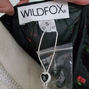 Wildfox black sheer blouse with floral pattern, two front buttons.