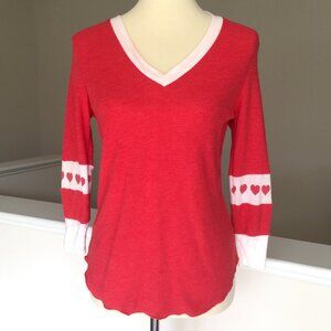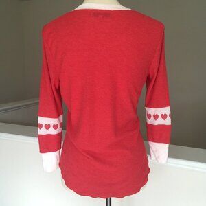Cute and festive Wildfox graphic long sleeve rugby or varsity style shirt with heart prints.