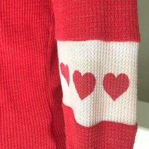 Wildfox Shirt Top Red Graphic Hearts Waffle Knit Thermal V Neck Ruffle Hem XS