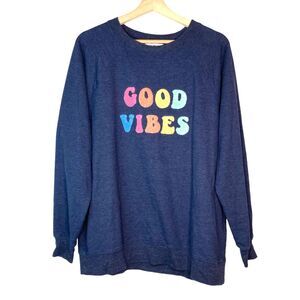 Wildfox Size Small Navy Blue GOOD VIBES Pullover Sweatshirt Loungewear