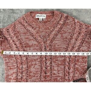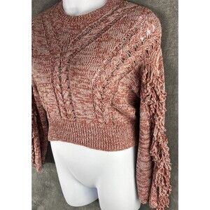 Wildfox Small Warren Sweater Pink Red Pullover Cable Knit Fringe Sleeve Sample