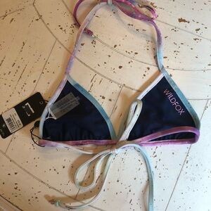 Triangle Light weight Bikini Top with tie-dye Space cadet print. Reversible so can be worn as two bathing suit tops. Size XS. MSRP: $70