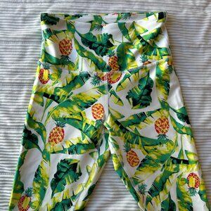 Wildfox Sport Green & Yellow “Palms & Pinas” Pineapple Print Leggings Small