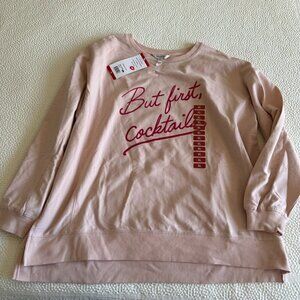 Wildfox Statement Sweathsirt But First Cocktails Blush Pink Sz XL