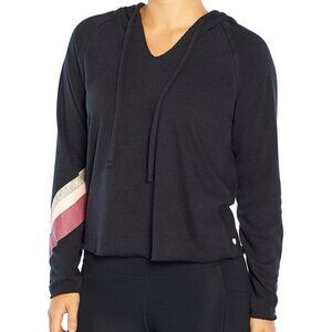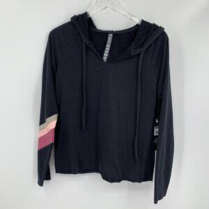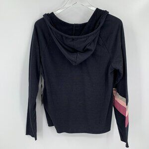 Wildfox Sweat Black Halo hoodie stripe pink gray raw cut hem sweatshirt new M