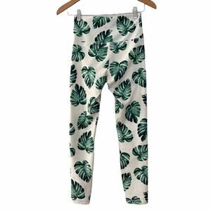 Wildfox Sweat Womens Tropical Banana Leaves Leggings Pants White Green S Small