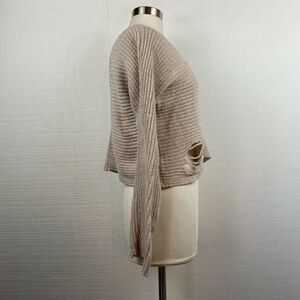 Wildfox Sweater S Womens Light Pink Beige Distressed Cropped V Neck Long Sleeves