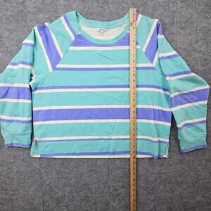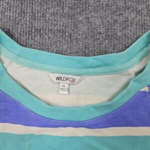 Wildfox Sweater Womens XL Blue Green Striped Crewneck Pullover Lightweight Top