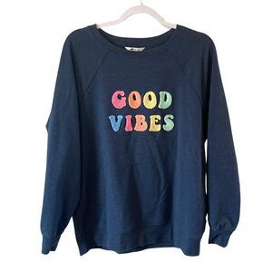 Wildfox Sweatshirt Womens S Navy Blue Good Vibes Oversized french terry texture