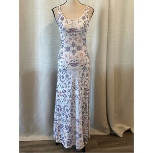 Wildfox Swim Dress Paisley Maldives Maxi Swim Cover Blue White Cotton Sz M