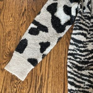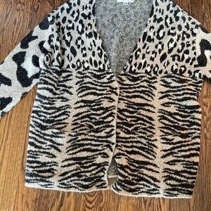 Wildfox Tan & Black Alpaca Wool Blend Cardigan Animal Print Button Sweat…