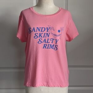 Wildfox Tee Sandy Skin Salty Rims Cotton Short Sleeves Crew Neck Pink L NWT