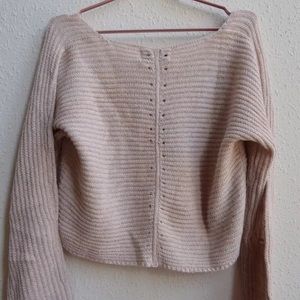 Wildfox Terra Crop Distressed Blush Pink Sweater