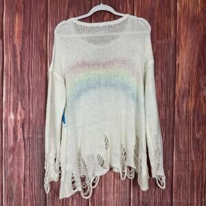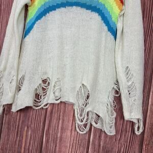 Wildfox White Label Rainbow Sweater Distressed Slouchy Oversized Womens Size XS