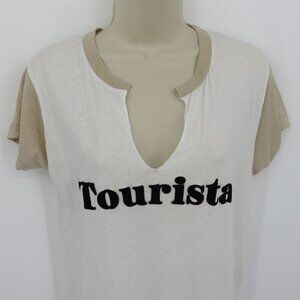 Wildfox Women Large Tourista Short Sleeve Boxy T Shirt Top White Beige Sheer