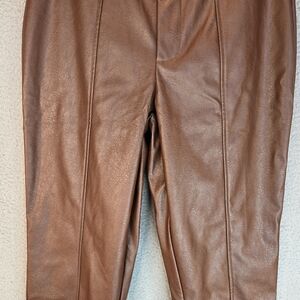 Wildfox Womens Faux Leather Pants Sz M Dark Brown High Waist Front Ankle Slit