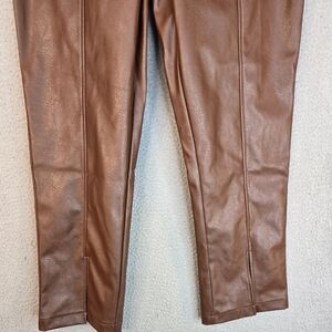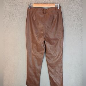 Wildfox Womens Faux Leather Pants Sz M Dark Brown High Waist Front Ankle Slit