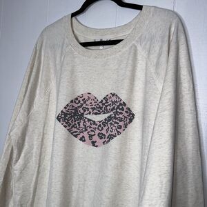 Wildfox Women’s Leopard Lips Tunic Crewneck Sweater Beige Size XL