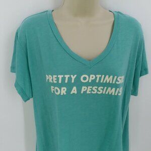 Wildfox Womens Medium Pretty Optimistic for a Pessimist Teal Green Tee Shirt Top
