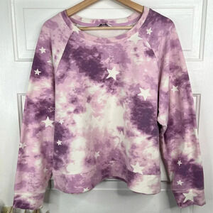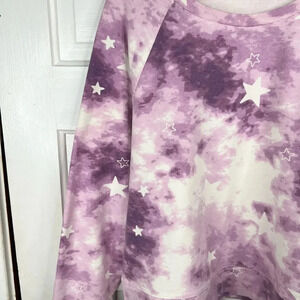 Wildfox Women's Purple Tie-Dye Star Print Pullover Sweatshirt Cropped Size XL