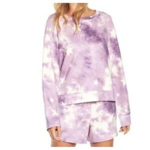 Wildfox Women's Relaxed Fit Super Soft Sweatshirt And Short Lounge Set Size XL Purple Brand New Size: XL Sweatshirt And Short Lounge Set Super Soft Relaxed fit Perfect for lounging Cotton Blend Tie Dye Stars Color (purple) Color may be lighter or darker due to different PC/Cell phone screens 58% Cotton, 39% Polyester, 3% Spandex Imported