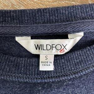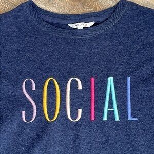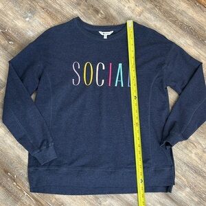 Wildfox Womens S Social Sweatshirt Blue Embroidered Crewneck Lounge Relax Cozy