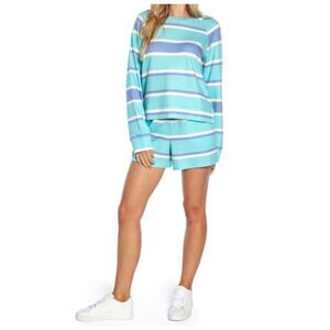 Wildfox Women's Sweatshirt & Short Lounge Set blue stripe medium NWT$160