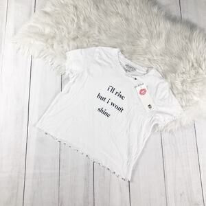 Wildfox Women's Sydney Rise & Shine Ruffled Graphic Tee White Cropped Bottom Hem