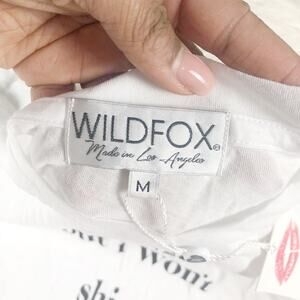 Some people rise and shine, I caffeinate and hope for the best. The Wildfox Sydney Tee is a shrunken, slightly cropped, boxy fit tee. Ruffle detail along sleeve and bottom hem. In our soft vintage jersey fabric.