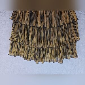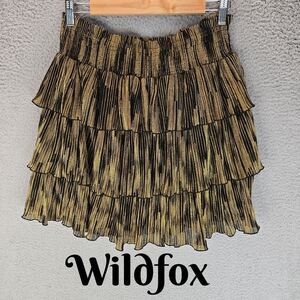 Wildfox Womens Tiered Mini Skirt Sz L Black With Gold Thread Highlights Elastic